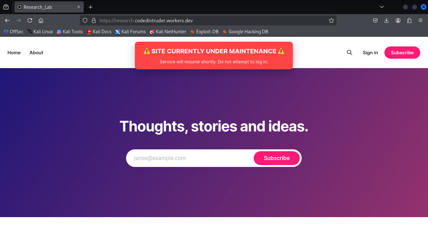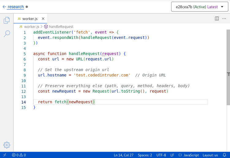 To demonstrate the practical impact of this capability, the first experiment focuses on visible, non-invasive response manipulation of a public page. The subdomain test.codedintrusion.com is fully proxied through cloudflare worker.